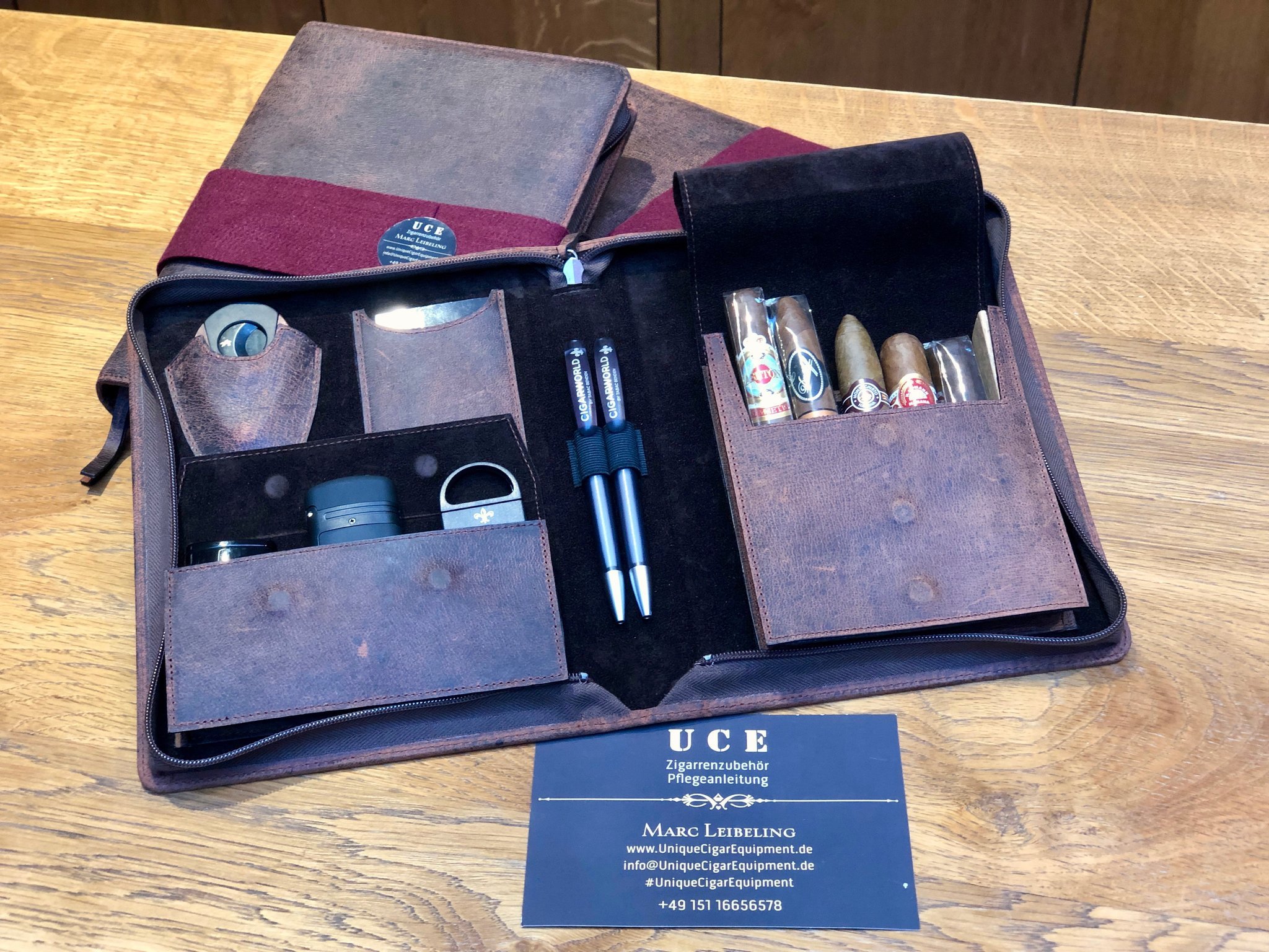 UCE Cigar Case 100% Genuine Leather Kamel Dunkelbraun Groß