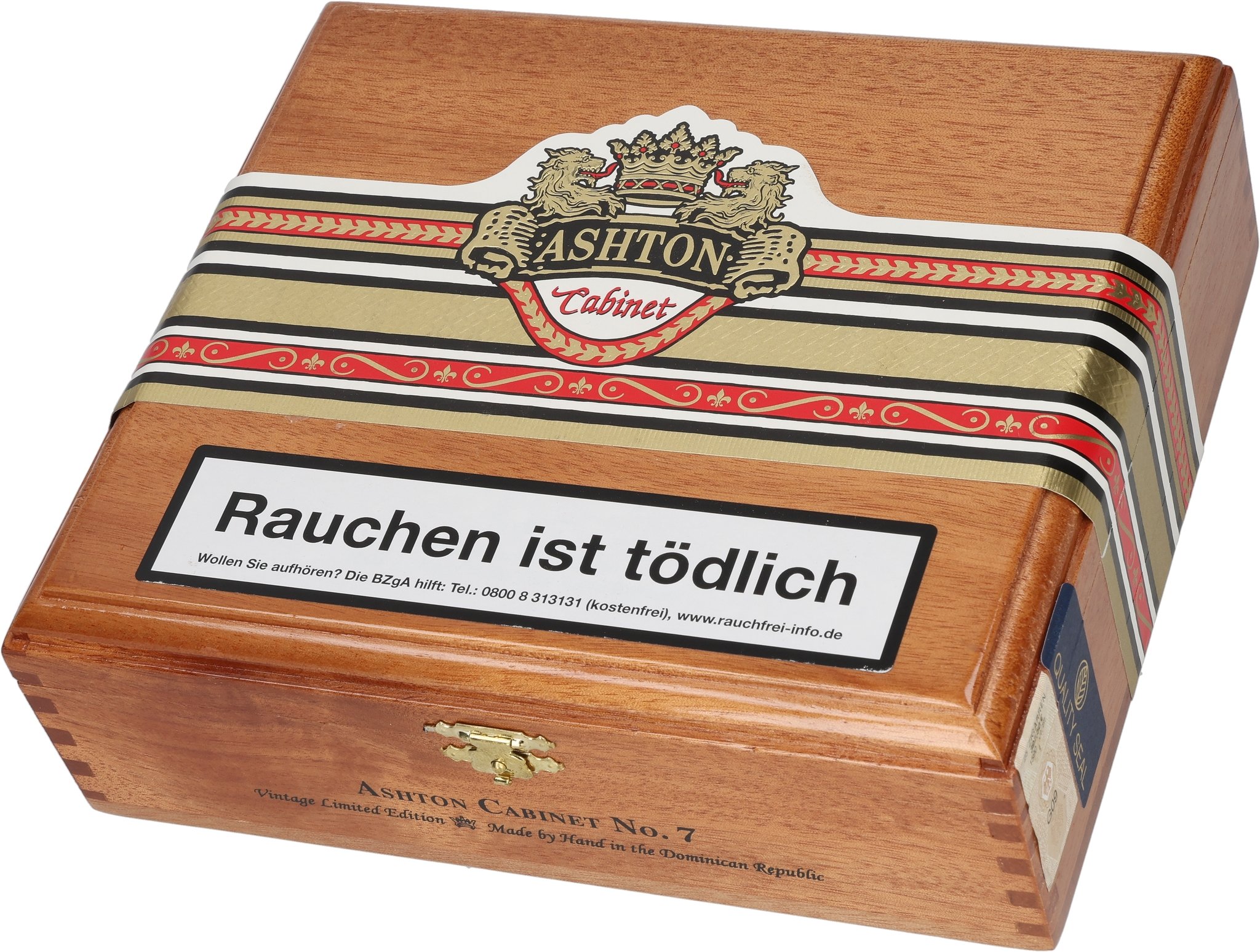 Die Ashton Cabinet – Selection No. 7 Cabinet -Zigarren im Corona-Gorda-Format wirken eher plump als schlank, sind aber dennoch ausgesprochen handlich. Ihr Durchmesser von 20,6 mm und ihre Länge von 155 mm gleichen sich gut aus und man kann von diesen Longfillern einen langen Rauchgenuss erwarten.