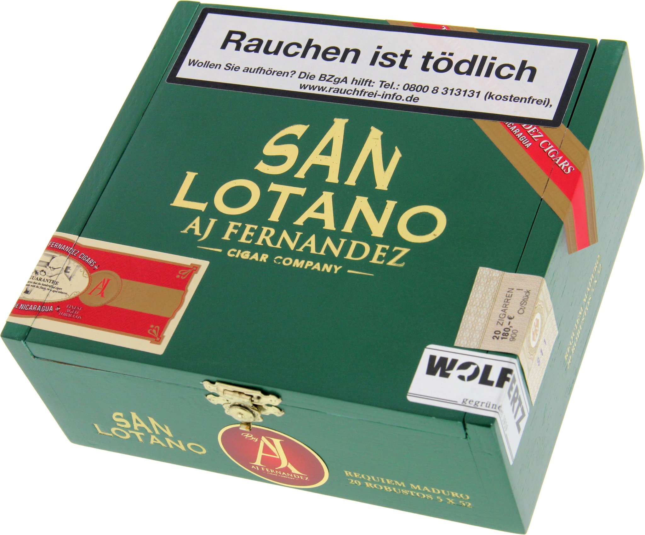 Die San Lotano Maduro Robusto wird unter strengen Qualitätsauflagen von Hand gerollt. Ihr Deckblatt ist ein speziell ausgewähltes Maduro aus mexikanischem Anbau, genauer gesagt, aus dem berühmten Anbaugebiet San Andrés. Der betriebseigene Einlagenblend aus Nicaragua und Honduras sowie das honduranische Umblatt harmonieren perfekt damit. Gemeinsam sorgen die gereiften Blätter für einen mittelkräftigen bis würzigen Rauchgenuss der anspruchsvollen Art. Dies sind box-pressed Zigarren, denen es nicht an Festigkeit und Konstanz mangelt.