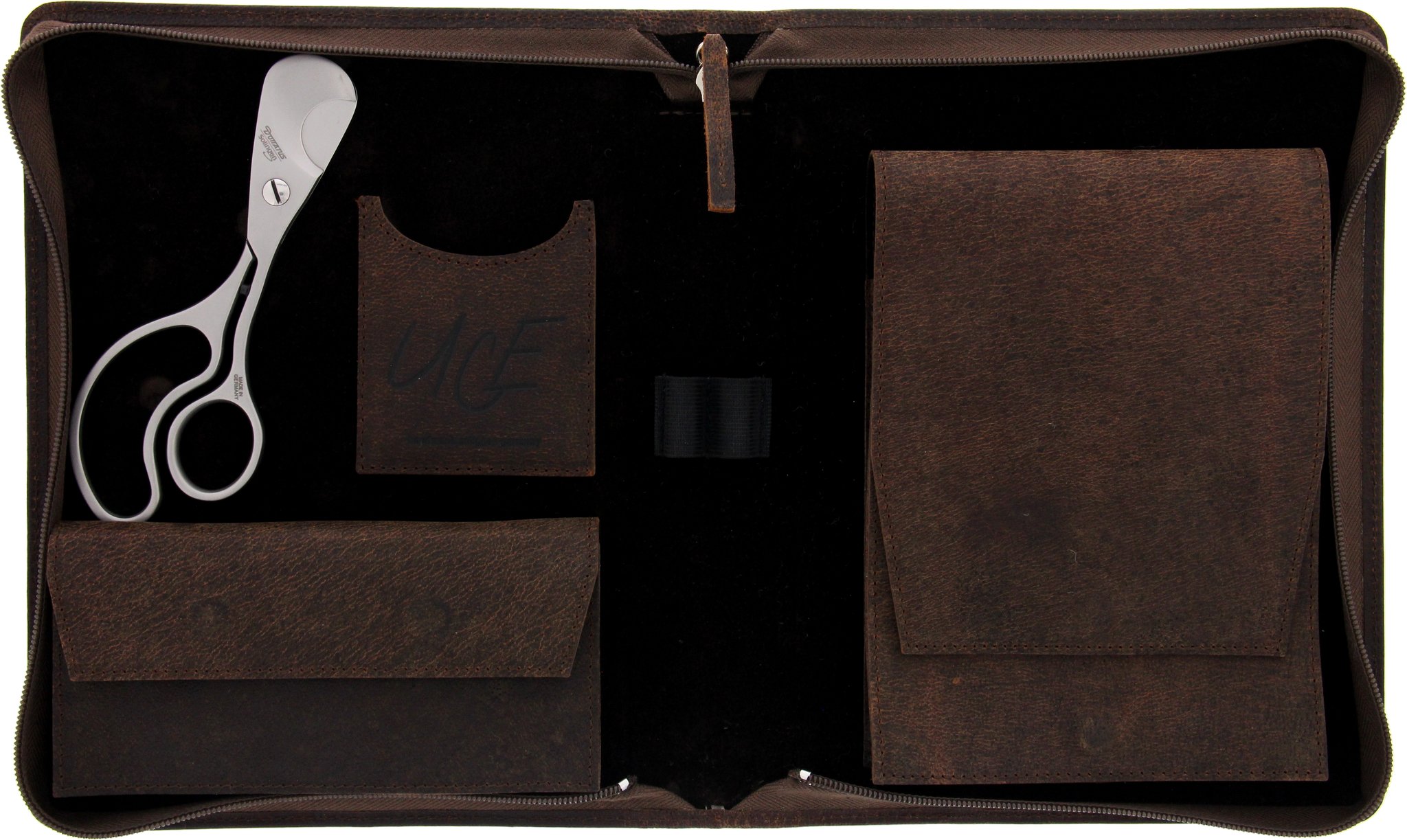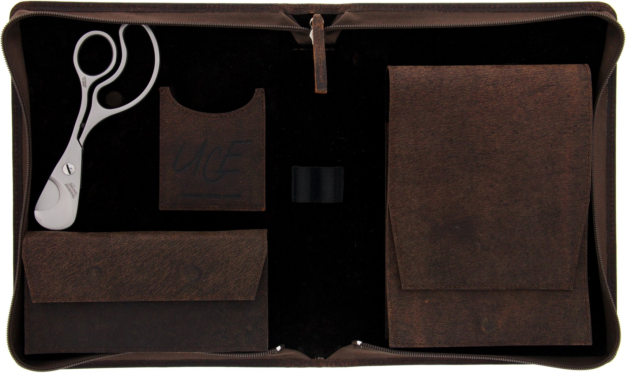 UCE Zigarrenetui 100% Echtleder Kamel Braun Groß (Scheren-Edition)